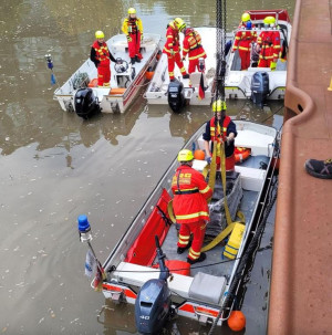 Den Abschluss bildete mit Anbruch der Dunkelheit die Ausleuchtung der Einsatzstellen durch die Logistikgruppe. Nach über sechs Stunden endete die Übung um 21:00 Uhr mit Rückbau, dem Kranen der Boote und einer gemeinsamen Abschlussbesprechung bei einem Imbiss.
