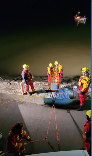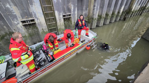 Anschließend starteten die Wasserrettungsgruppen mit ihren Strömungsrettern eine Schräghangrettung am Stadersand. Kurz darauf traf auch die Tauchergruppe wieder in Stadersand ein.